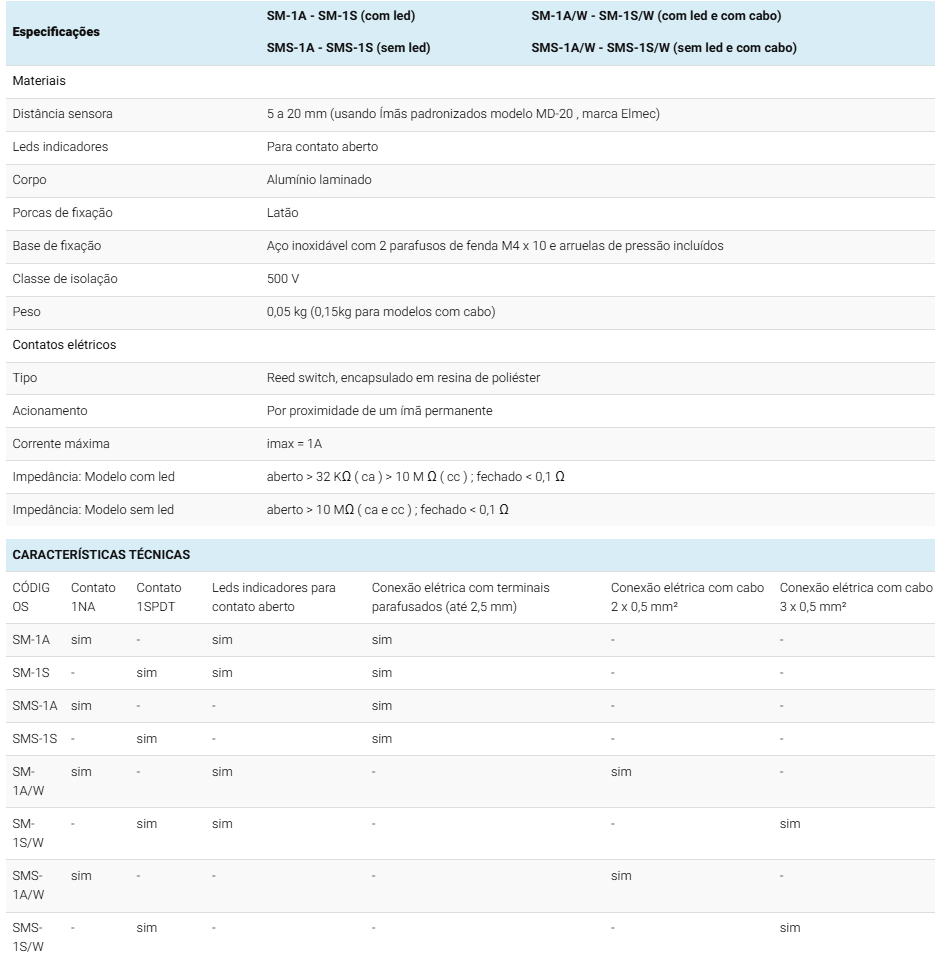 • Os sensores ELMEC da série SM são fabricados com componentes de alta qualidade, podendo ser usados como elemento de sinalização